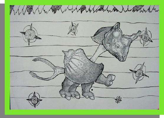 Mein aussergalaktisches Monster kann seinen dünnen Hals einziehen und das Horn nach vorne strecken. In diesem Zustand ist es fast unbezwingbar.