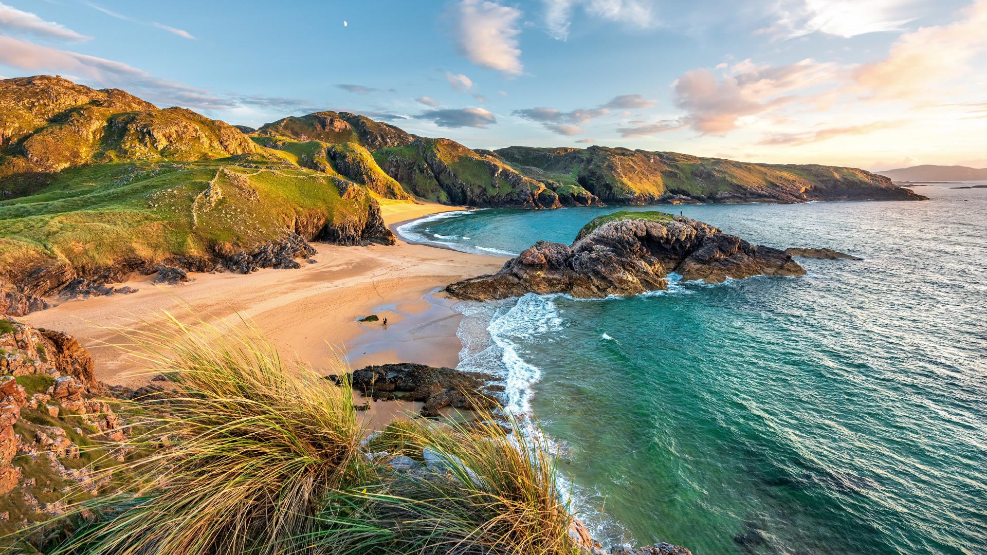 beach at harris, lewis donegal, Loch finn and Loch Ave Old Man of Storr islay mull Dunnottar Castle Eilen Donan Glenfinnfan-Viadukt Rodel-Harris Edinburg