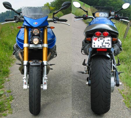 Ein äusserst spannender Umbau, habe ich am 6. Zentralschweizer Moto Guzzi Treffen am Glaubenberg gesehen und der hat mich fast umgehauen. Aus Alt (LM III) mach NEU, wunderbar radikal. Solche Motorräder sollte Guzzi anbieten, einen Custom-Shop eröffnen, den besten Guzzi -Tunern Europas einen Entwicklungsauftrag geben und Jährlich ein Modell als Sonderserie (50 bis 100 Stk.) herausbringen. So wie das die namhaften Instrumentehersteller für Rockmusiker bereits längstens vormachen. Das Bild wurde von Petra & Markus von Moto MS zur Verfügung gestellt. |