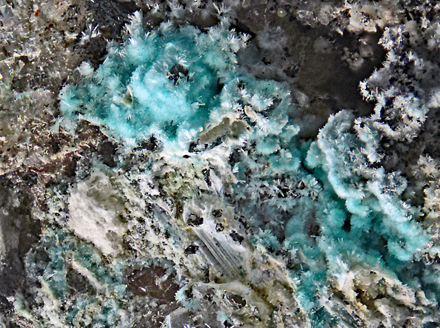 | Oxyplumboromeit | Pb2Sb2O6O | . | Auricalcit | (Zn,Cu)5(Co3)2(OH)6 | X | Langit | Cu4(SO4)(OH)6x2H2O | X | ||