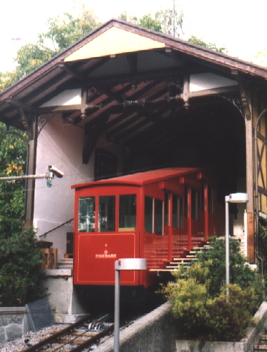 The new Polybahn is almost complete. This view shows the upper station from Polyterrasse. Before opening, a railing was erected along the trackside making this view historic very quickly.