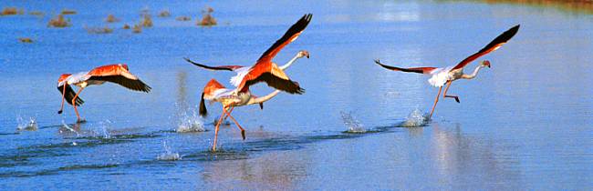 (I)   les flamants roses et les hérons pourpres