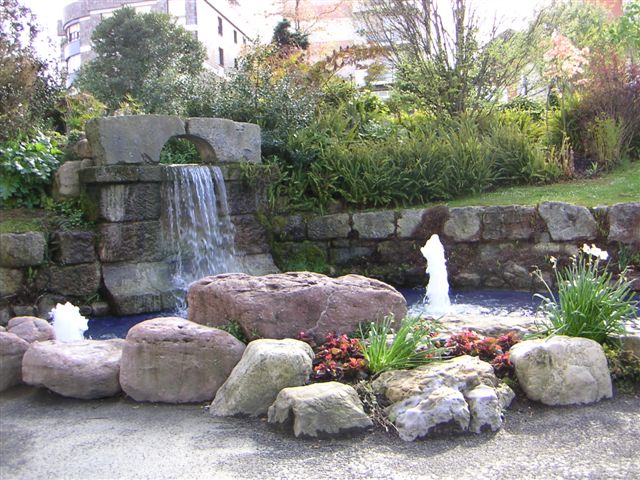 Teichlein mit Wasserfall und Springbrünneli im Dorf. |