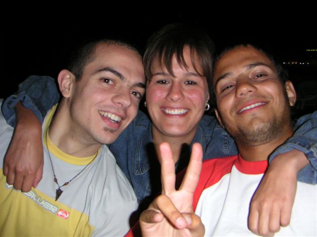 ![]() Adrian, Steffi und Fernando Als sich unsere Ferien schon langsam dem Ende zuneigen, lernen wir Fernando (Argentinien), den Salvavidas (Life Guard) des Strandes von El Campello kennen und gehen mit ihm und seinem Cousin in Alicante was trinken. |