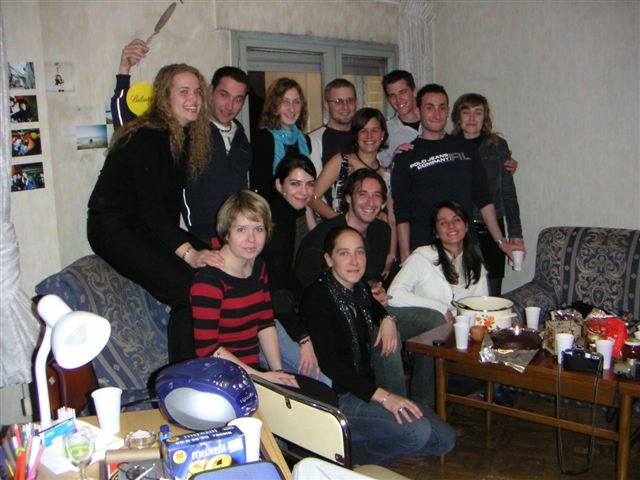 Clementines Geburtstag bei ihr zu Hause und später im Ausgang. stehend von links: Tiina (Finnland), Marco (IT), Clementine (FR), Patrick (CH), Steffi (CH), Roger (CH), Paolo (IT), Christine (ES) sitzend von links: Marianne (Finnland), Delphine (FR), Juliette (FR), Bart (IT), Vanna (IT) |