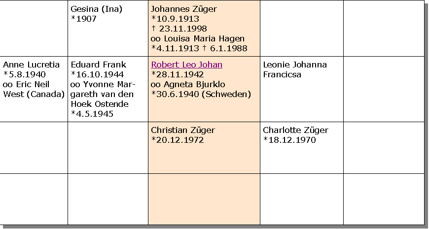 Stammbaum der Familie Robert Leo Johan Züger, wohnhaft in Schweden